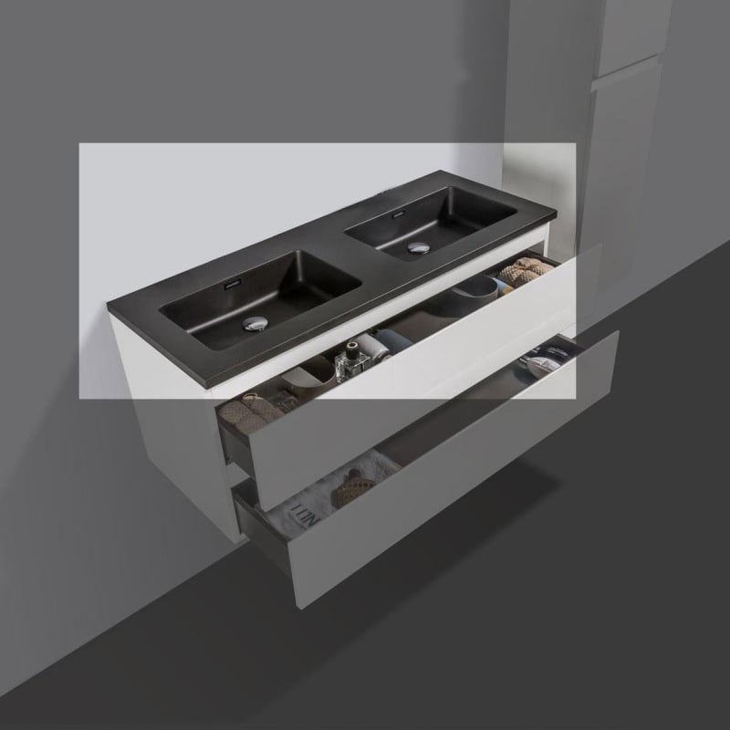 Kwartsteen wastafel Tieme 120cm zwart zonder kraangat