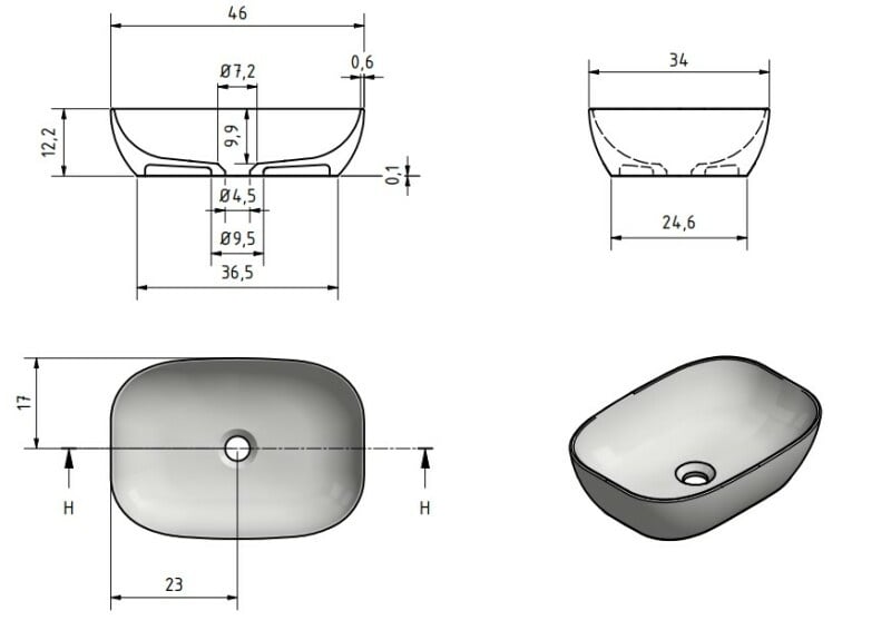 • Breedte 46 cm